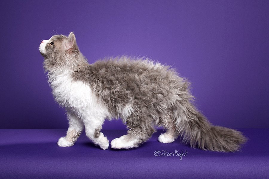 Кучерявая порода появилась при скрещивании лаперма с манчкином.