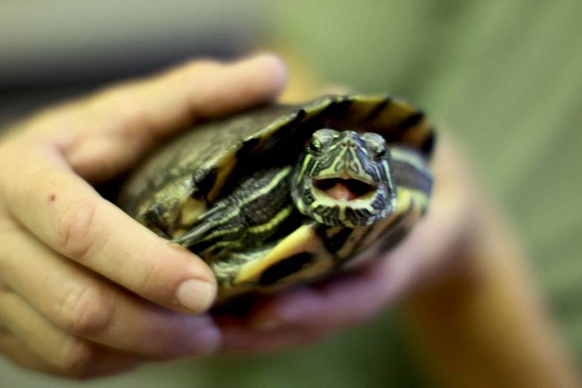 Если ваша черепаха пищит, внимательно осмотрите ее. Писком любимец может выражать боль. Часто именно писком рептилия оповещает о травме. Осмотрите ее кожные покровы и панцирь.