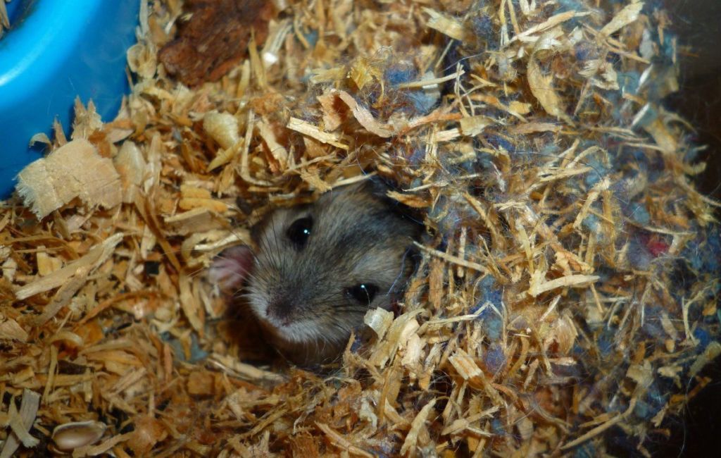 Днище жилья заполняют любым наполнителем, продающимся в зоомагазинах специально для хомок. Наилучшим экологически чистым материалом являются опилки. Во время уборки клетки через 7-10 дней не будет ощущаться неприятного запаха от насекомого.
