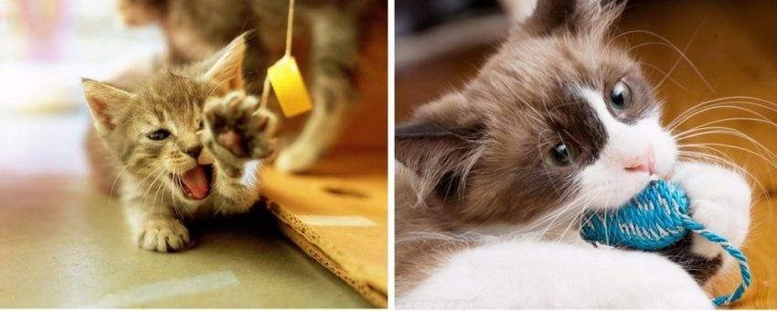 В качестве приспособлений для игры подойдут как покупные варианты в виде дразнилок, меховых мышей, радиоуправляемых игрушек, так и самодельные (привязанные за веревочку бумажки, шуршащие фантики).
