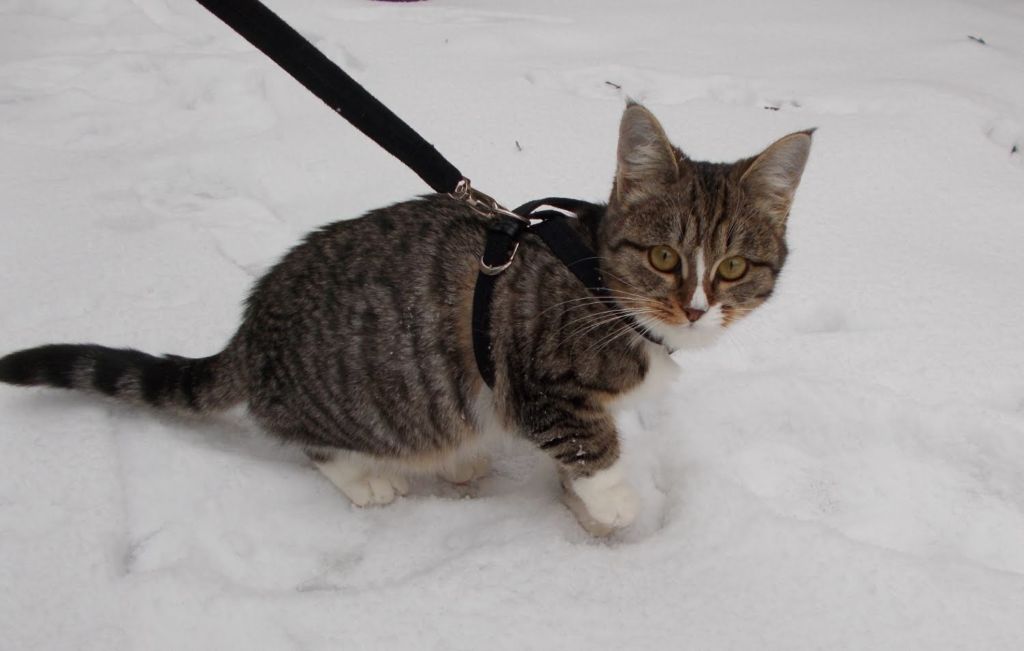 Большинству кошек нравится гулять на шлейке, а не на поводке