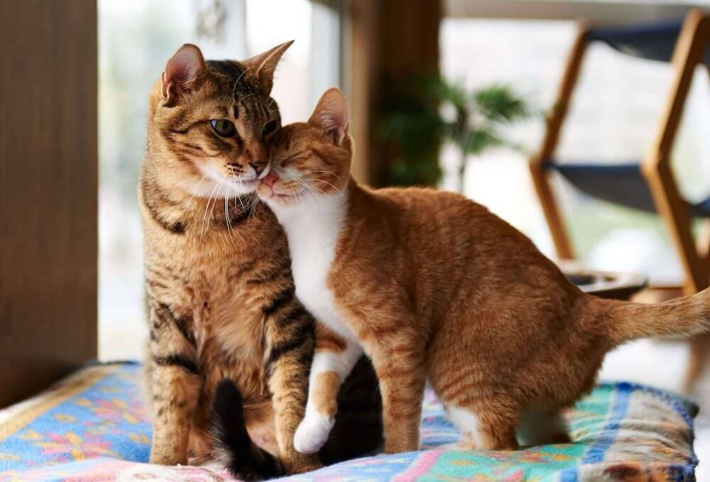 Для этого нужно поочередно протереть двух кошек сухим махровым полотенцем, уделяя повышенное внимание щекам, лапам и половым органам животных. И оставить это полотенце в их совместном доме