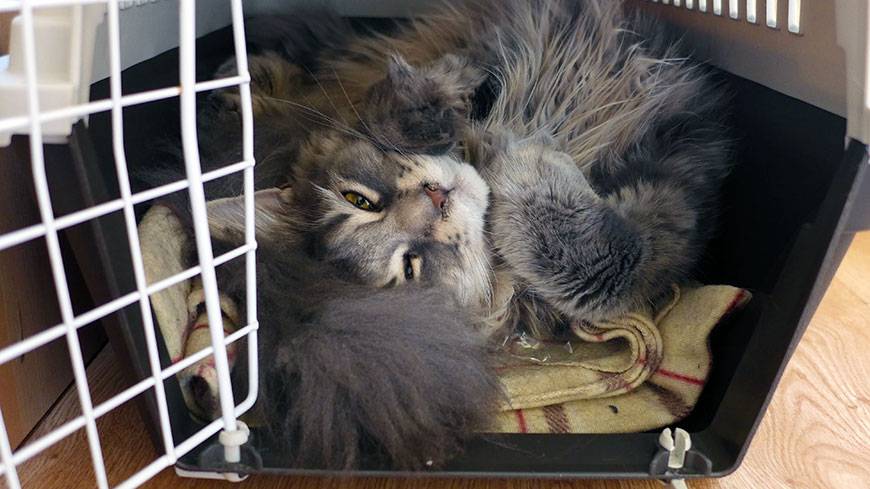- После операции поместите кота в просторную переноску, чтобы в бессознательном состоянии движения небыли ограничены. Либо разместите на полу в теплом и без сквозняка месте. Не стоит это делать у отопительных приборов, это спровоцирует открытие раны. Воздух должен быть свежим, а освещение не ярким.