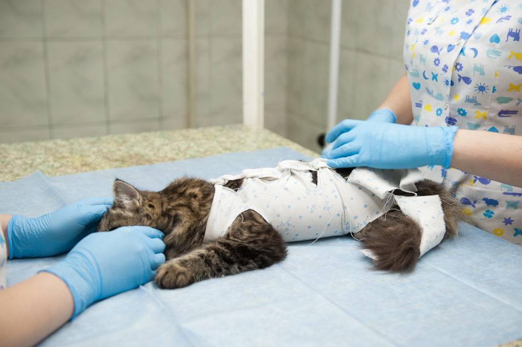 не давать вылизываться в промежности в первые сутки. Если нет возможности постоянно контролировать животное, то можно воспользоваться специальным воротничком, который ограничит ему доступ к трудно доступным местам своего тела;