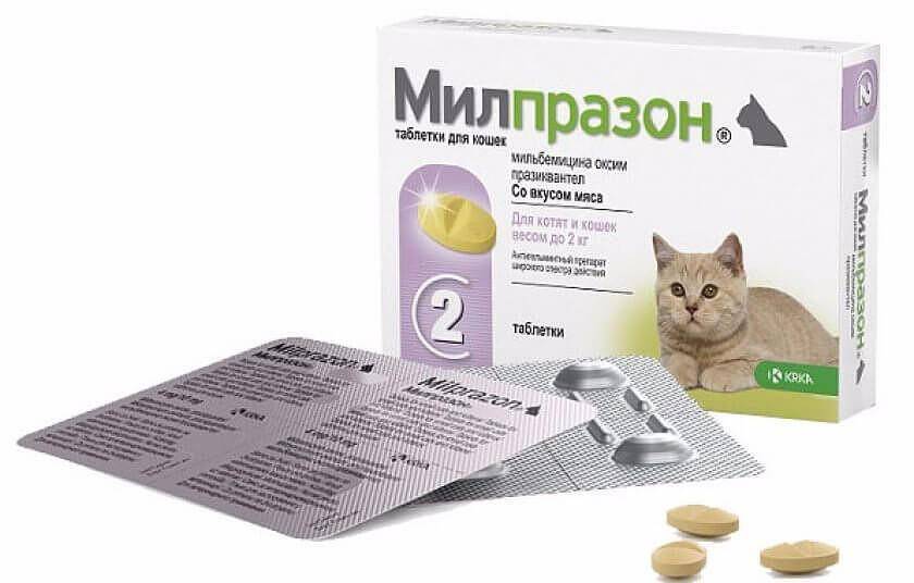 Милпразон используется в качестве лечебных или профилактических мероприятий при развитии нематодных и цестодозных инвазий, а также популяризации паразитирующих червей в организме кошек, вызывающие различного рода заболевания. Для удобства таблетку рекомендуется растолочь и давать в дробном виде вместе с кормом, чтобы кошка смогла съесть положенное количество.