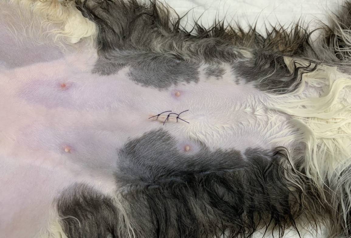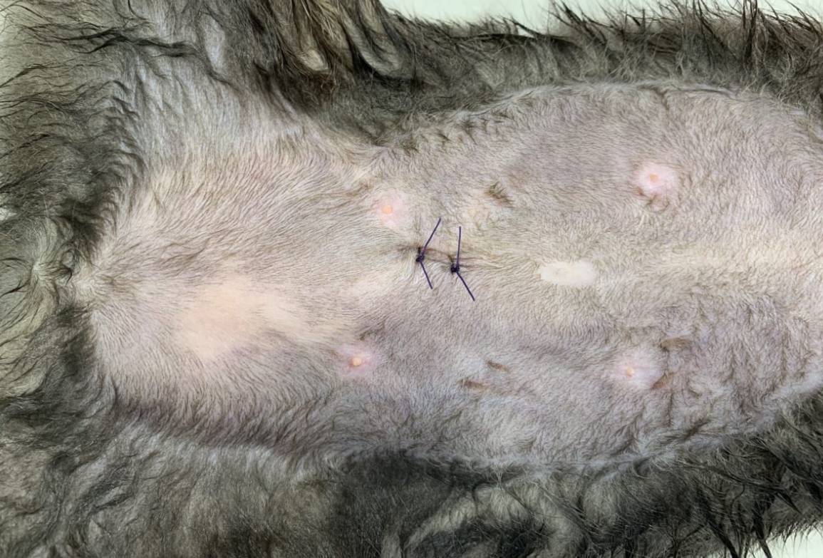 На третьи сутки она уже будет пытаться снять попону, ведь она сильно мешается! Но допускать этого нельзя. Она будет лезть вылизывать шов, что может привезти к раскрытию раны (если шов поверхностный) или же к полному разлизыванию наружного слоя кожи (внутренний шов).