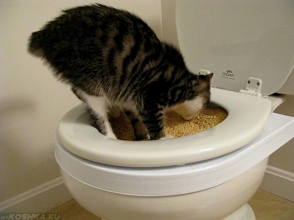 Наполнитель из кошачьего лотка перекочевал в унитаз