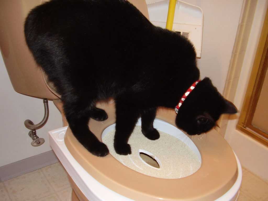 В результате всей этой операции ваша кошка, запрыгнув на унитаз, не обнаружит там своего лотка и, поколебавшись несколько минут, все же сделает свое дело.