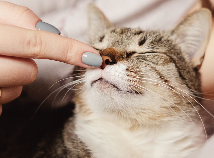 Привлечь внимание животного. Можно смазать пальцы настоем валерианы