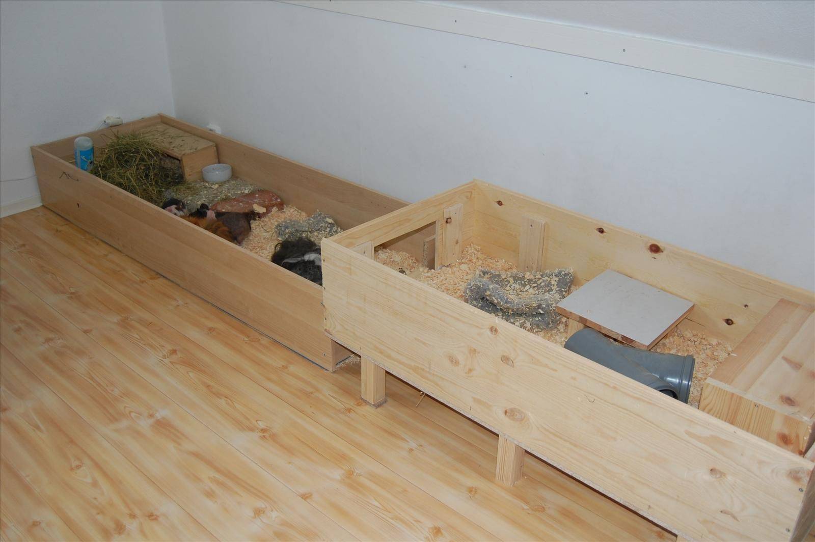 По сравнению с обычной клеткой стеллажная конструкция издает гораздо меньше шума, когда свинка разводит «бурную деятельность». К тому же через стенки и перекрытия такого сооружения мусор (частицы подстилки, наполнителя и т. п.) практически не попадает наружу, в отличие от прутьев клетки, сквозь которые вылетают все мелкие элементы.