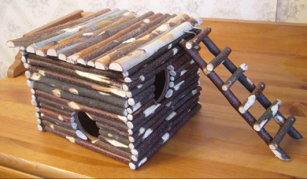 Дерево (в виде дощечек, округлых и плоских палочек) или фанеру – крепкие, безвредные, проводят воздух, сохраняют тепло. Но нужно проверить, чтобы об стенки любимец не посадил занозу, чтобы внутри не торчали острия гвоздей;