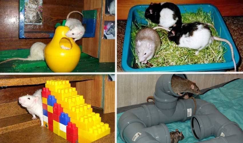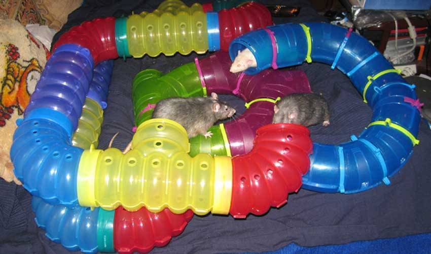 Домашние крысы — очень активные и любопытные животные. Все время сидеть в клетке им будет скучно. Чтобы как-то ограничить перемещение животных по квартире и в то же время занять их в ваше отсутствие, вы можете создать для них настоящий маленький городок из подручных материалов.
