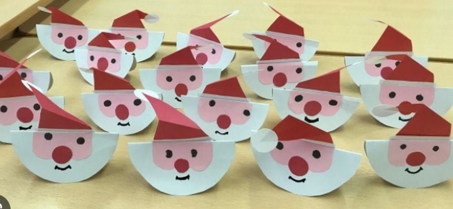 А вот таких дедушек морозов вы сможете с радостью сделать в качестве новогодних украшений. Достаточно всего лишь вырезать круг, колпак и личико нашему деду морозу, а затем всё склеить.