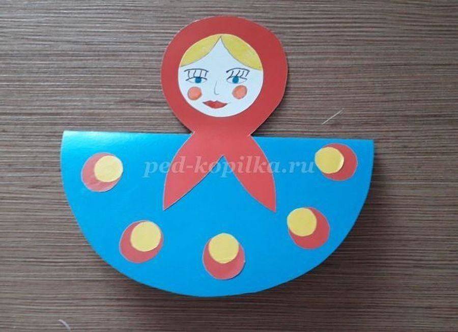 Матрёшку, как и другие остальные игрушки, сделать достаточно легко. Понадобится несколько цветов бумаги для того, чтобы вырезать круг и саму косынку матрёшки.