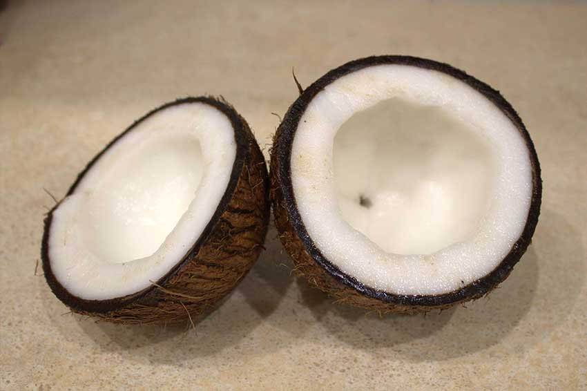 После распила вычищаем всю мякоть из кокоса, после чего хорошо промываем его водой и оставляем сушится.