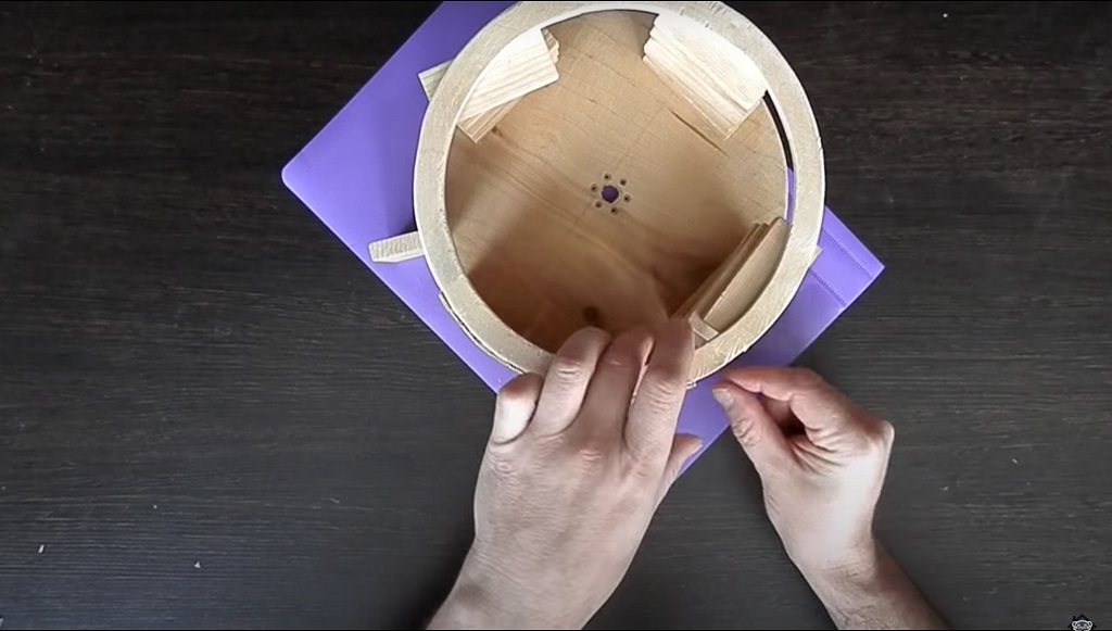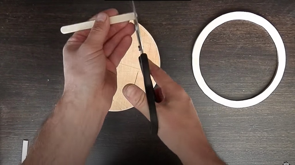 Шаг 4. Приклеиваем палочки от мороженого на основу и наружное кольцо.