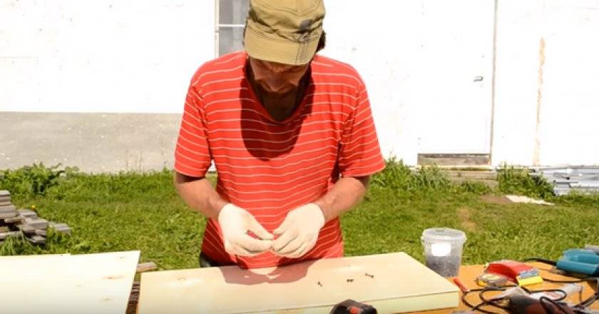- Далее надо наметить места для заклепок и соединить с их помощью детали.