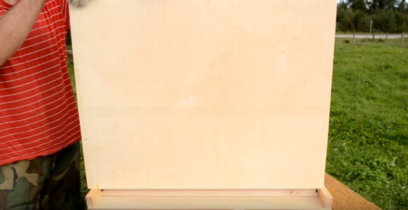 Обшиваем дощатые стены изнутри клетки, используя фанеру. Материал должен быть многослойным и хорошего качества. Толщина может быть любая, но очень толстый лист брать не нужно, чтобы не делать конструкцию слишком увесистой.