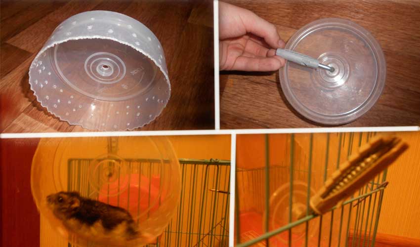 - Прикрепить готовый тренажер к клетке домашнего хомячка.
