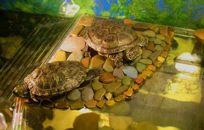 - Нельзя использовать в качестве грунта песок, острую каменную крошку, мелкие опилки или содержать черепаху просто на гладкой поверхности.