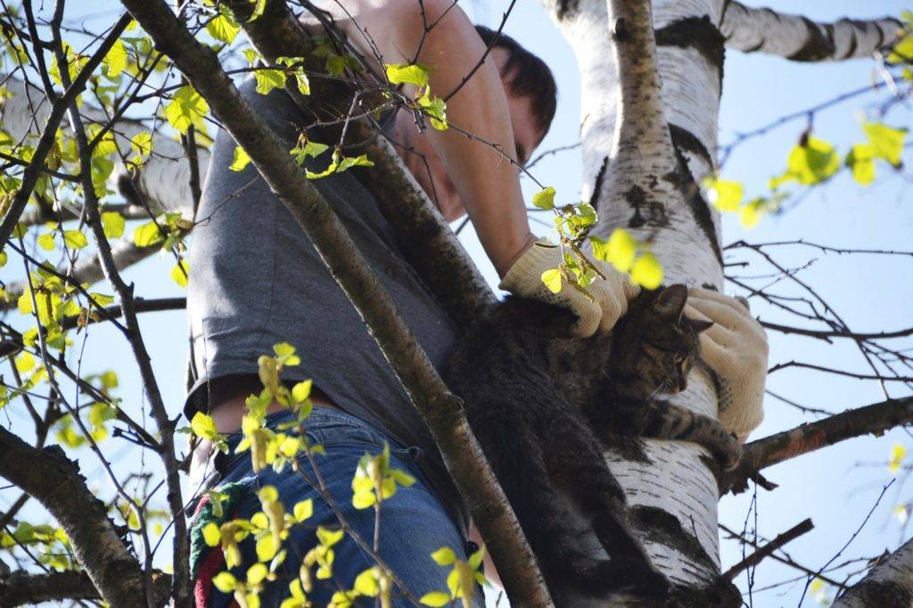 Если снять с дерева кошку не удается, не стоит упорствовать, доверьте это дело профессионалам — обратитесь в МЧС. Но помните, что этот вариант на крайний случай, например, когда животное просидело на дереве более 20 часов.