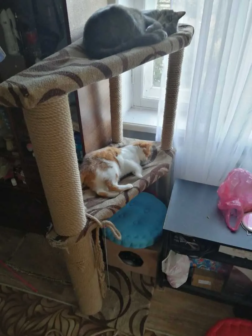 Да, а «конструкцию» подарили соседям, их кошки оценили и полюбили ее сразу и бесповоротно. Вот одинт из членов семьи наших соседей.