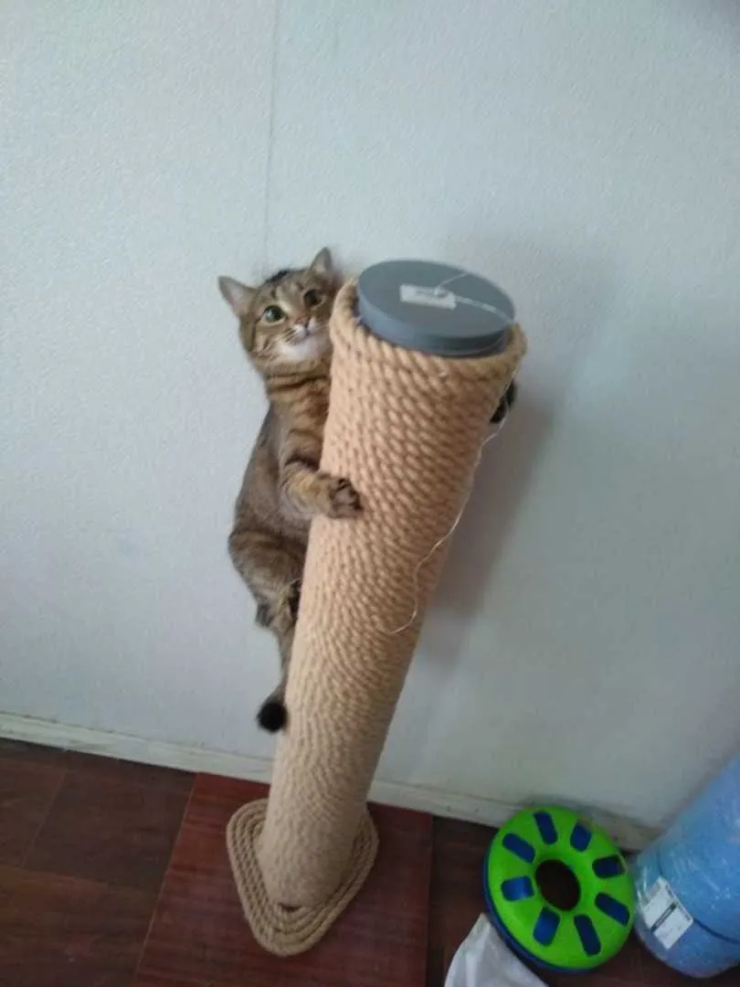Модель может быть любая, но материал обязан быть натуральным. Металлические крепёжные должны быть скрыты. Материал, о который будут точиться когти должен быть из волокна, чтобы его можно было цеплять, но плотный настолько, чтобы не зацепиться и не оборвать коготок.