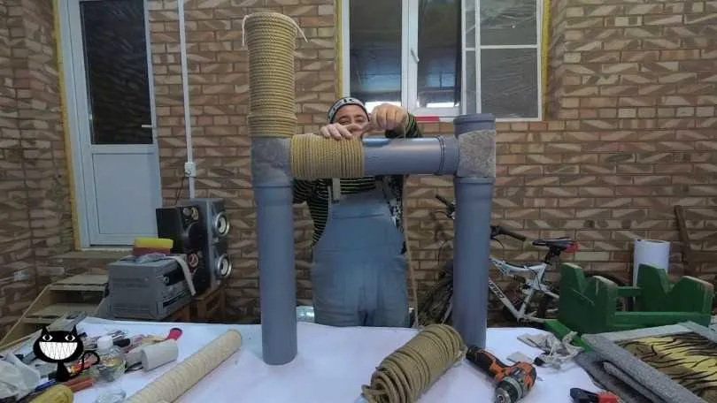 Если у вас нет желания оббивать когтеточку, тогда потребуется веревка, для этого может подойти пеньковый канат, который очень прочный. Если все же решите оббивать, то для этого рекомендуется подобрать ковер с плетеным основанием, а не клеевым. Для лазания и царапания, плетеное покрытие станет идеальным и прочным вариантом.
