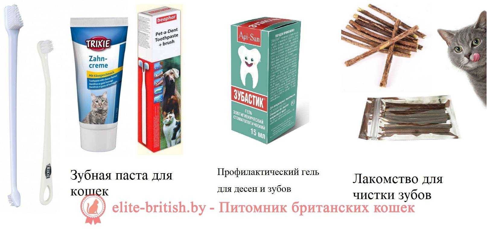 Периодическая чистка зубов. Процедуру очистку зубов у своего питомца можно проводить тремя способами: с использованием зубной щетки, обмотанным тканью пальцем или обычными ватными палочками. Все три варианта одинаково эффективны. Зубную щетку следует выбирать внимательно. Она должна помещаться во рту животного и иметь достаточно мягкую щетину. В специализированных магазинах и ветеринарных аптеках можно приобрести специальную щетку для чистки зубов кошки.