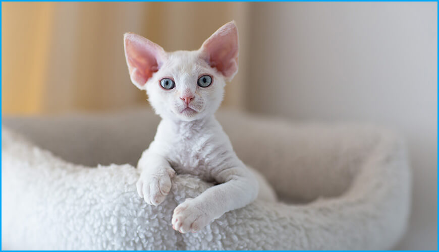 Красивый, любопытный и ушастый котенок Девон-рекс