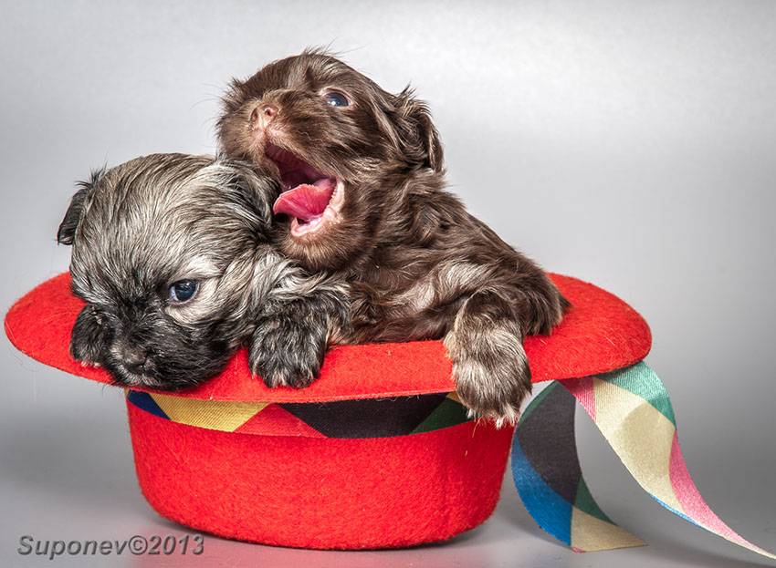 Как вы догадались, негативные настроения экспертов не остановили поклонников породы. К слову, сама идея создания породы появилась после намеренной вязки коричневой и белой болонки. В помете появился первый щенок черного цвета – Тин-тин. Малышка родилась миниатюрной, кучерявой и очень миловидной. Следующим логичным шагом была вязка уникальной Тин-Тин с подходящим кобелем, но в Ленинграде такого не оказалось. Почти через год в гастролирующем цирке была найдена и выкуплена собака Жужа – еще одна самка с подходящим фенотипом.