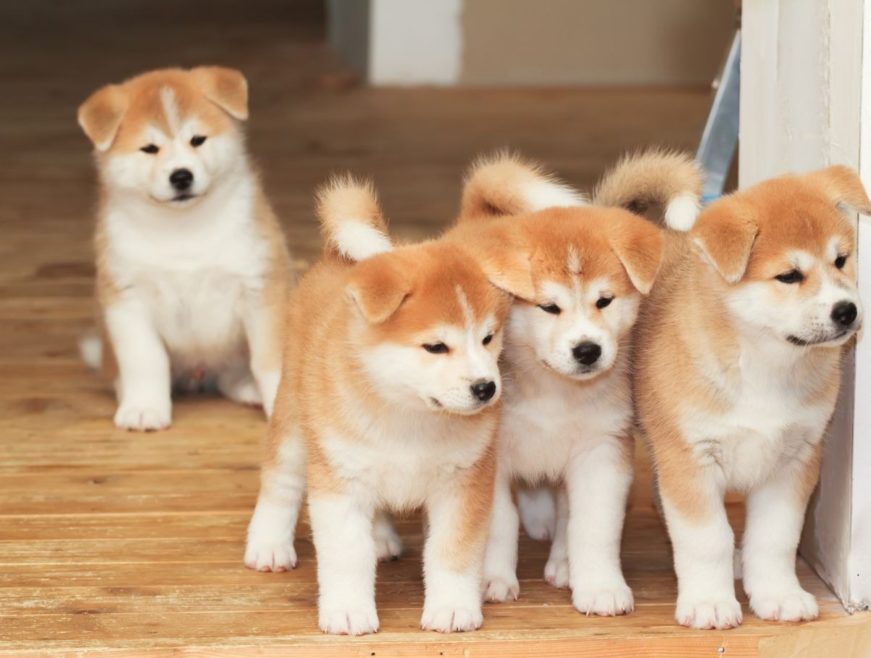 Маленькие акита-ину похожи на плюшевых медвежат. В первый месяц они имеют отличающийся от родителей окрас, за исключением тигровой шерсти, но в первую линьку он восстанавливается.