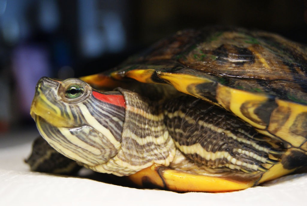 - Припухание в области «ушек». У красноухих черепашек эти участки обозначены красными полосками. Чаще всего опухлость возникает из-за отита. Она может быть практически незаметной, не превышать в объеме нескольких миллиметров, так и значительной, такие опухоли измеряются уже в сантиметрах. Отит часто развивается из-за переохлаждения, гораздо реже вследствие травмирования черепашки.