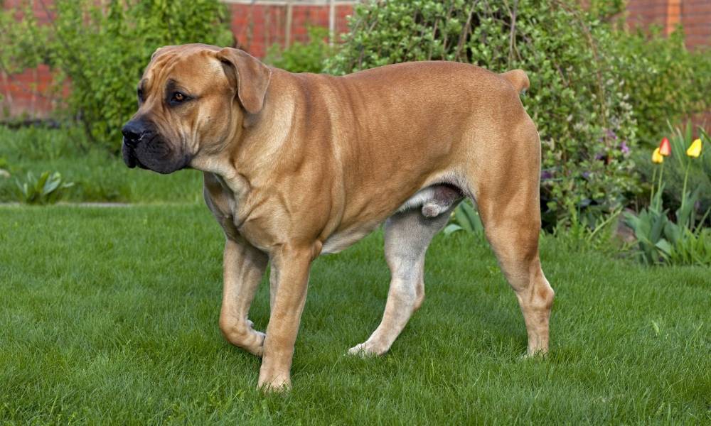 Бандоги мощные, обладающие массивным скелетом и отлично развитыми мышцами. Вырастают свыше 45-57 см. Масса взрослых питомцев – 45-68 кг. Окрас шерсти – черный, белый, серый, коричневый, рыжий.