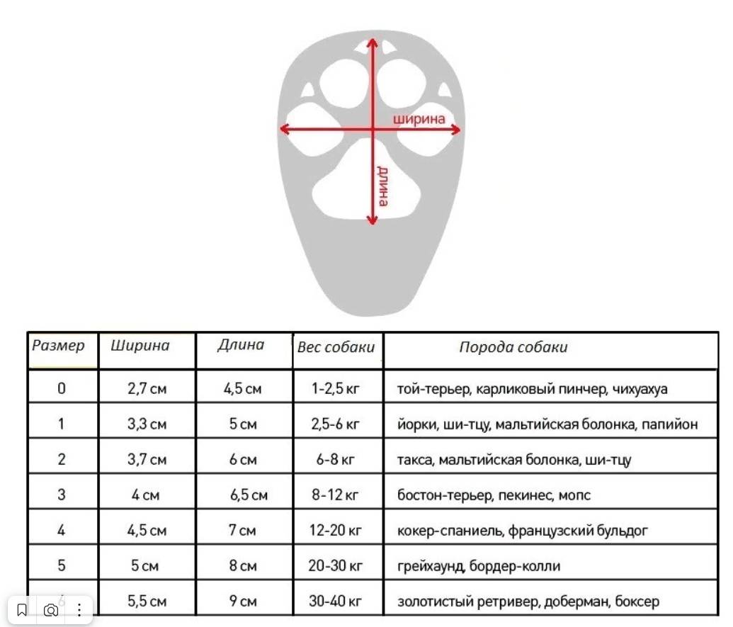 Важно учитывать и длину когтей. У декоративных пород собак когти обычно коротко и аккуратно стригутся. Все размеры в таблице указаны с учетом остриженных и приведенных в порядок когтей