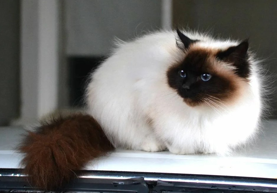 Внешне ее легко можно спутать с персидской кошкой. Гималайская порода имеет такую же длинную шерсть, приплюснутую мордочку и открытый взгляд. Хотя кошка кажется довольно массивной, она редко достигает свыше 5 кг.