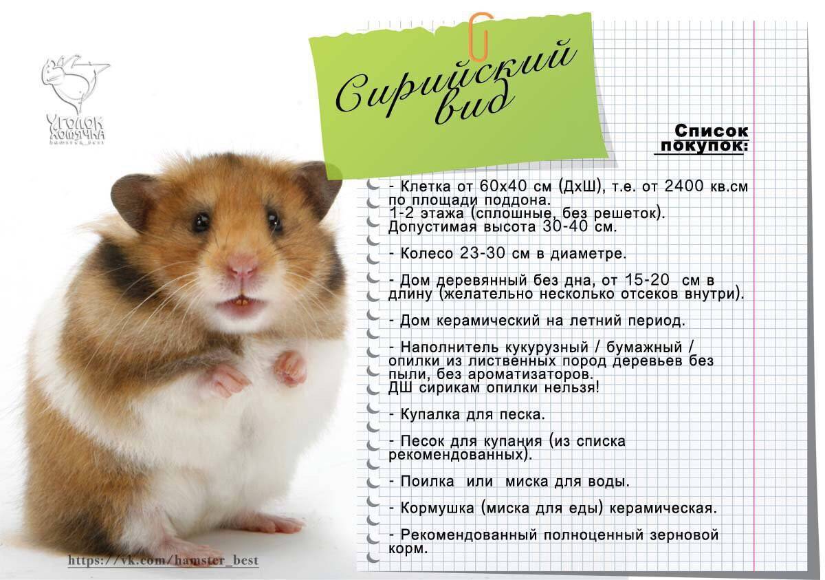 Вот таблица с некоторыми размерами и породами хомяков, чтобы помочь вам определиться с выбором