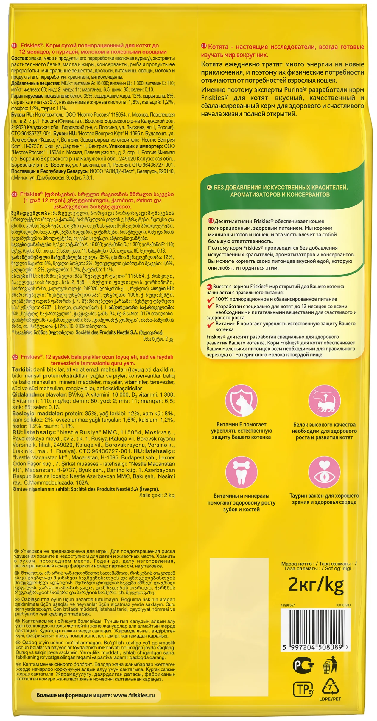 Friskies | Котята, взрослые | Для стерилизованных, домашних, контроль образования комков шерсти | |