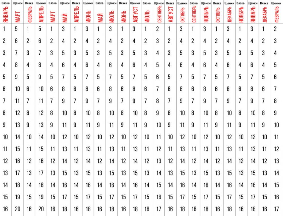 Но важно знать, что в зависимости от породы, возраста и здоровья собаки данные из таблицы не всегда могут быть верными. Важно! Также можно использовать лунный календарь