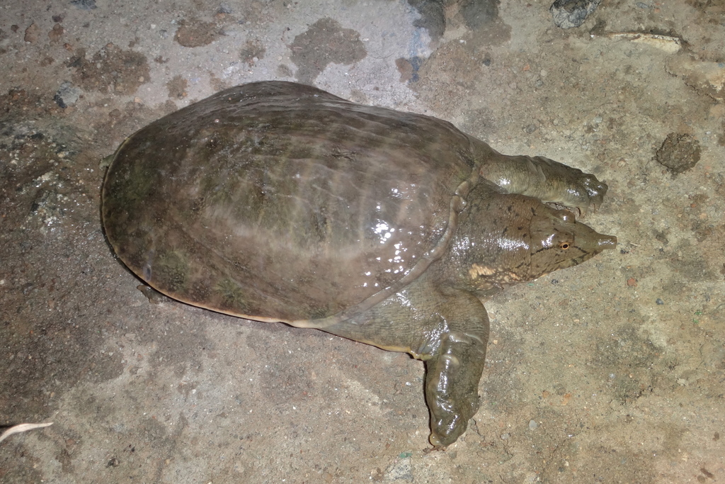 Необычная, исключительная черепаха с мягким, кожистым зеленым панцирем без щитков. Не вырастает больше 20 см.