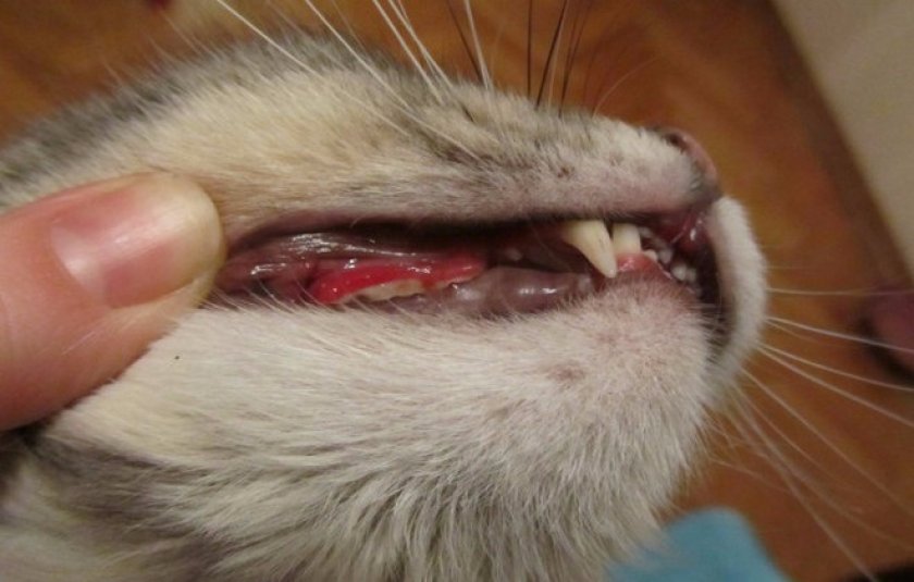 - Стоматит и воспаление десен. Появляются красные пятнышки в ротовой полости на небе, языке, позднее там образуются язвы. Они могут быть на носу и в носовой полости. Кошка плохо ест и пьет, делает выталкивающие движения языком, как будто подавилась, чешет нос, кашляет, чихает. Десны воспалены, красные, отечные, иногда на них виден белесый налет. Изо рта исходит неприятный запах.