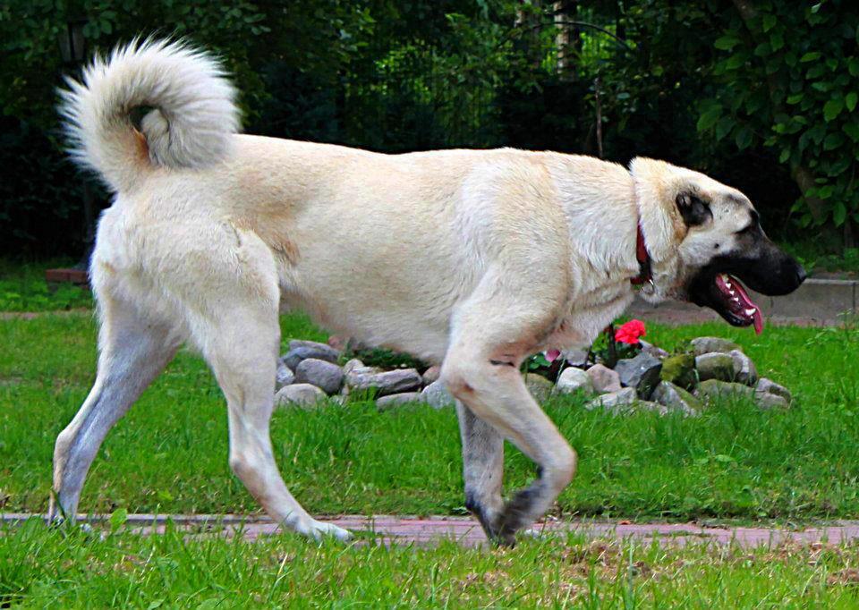 Хвост прямой и немного загнутый. Купировать его не принято. Когда пес насторожен, хвост закручивается кольцом, высоко поднимаясь за спину, особенно у мальчиков. Анатолийская овчарка на фото выглядит одновременно надежной и опасной.