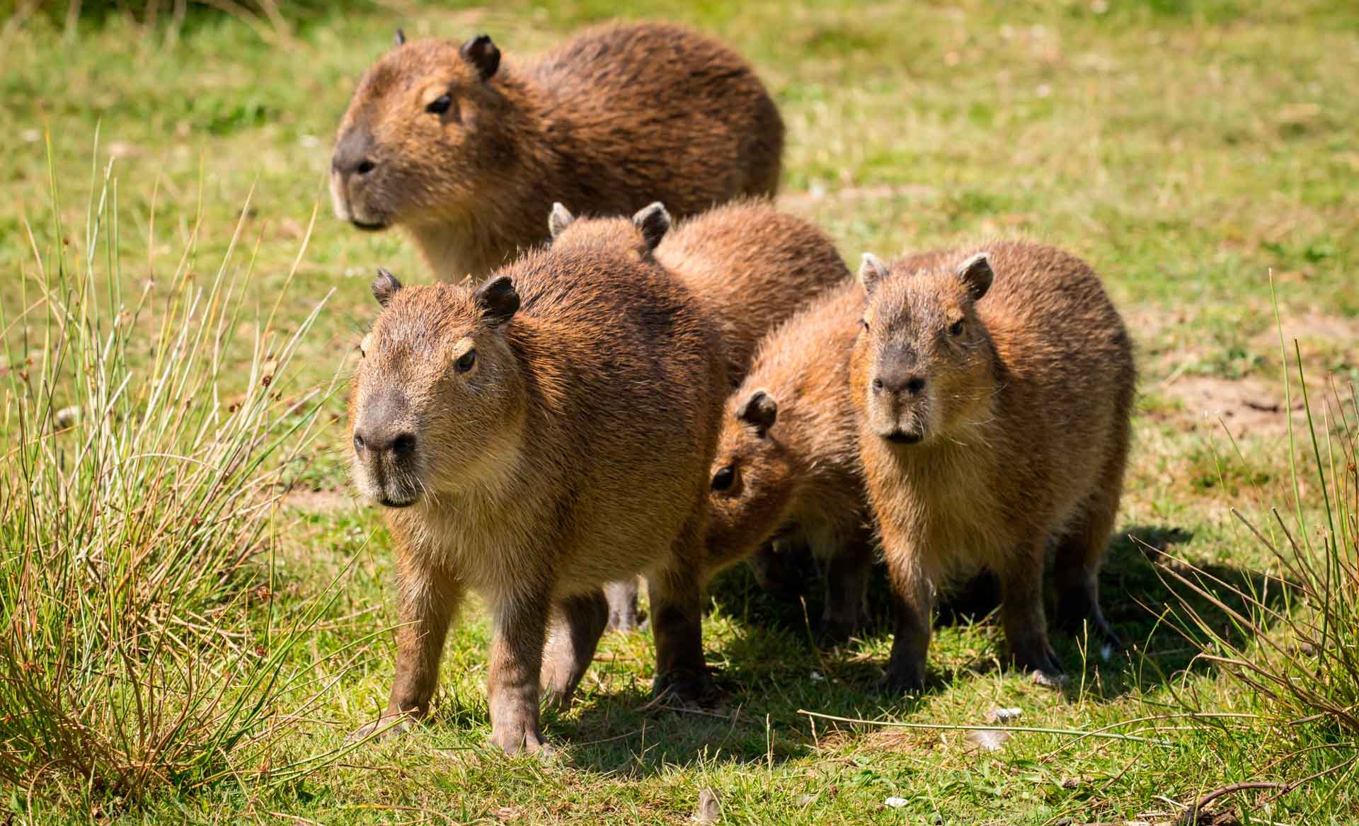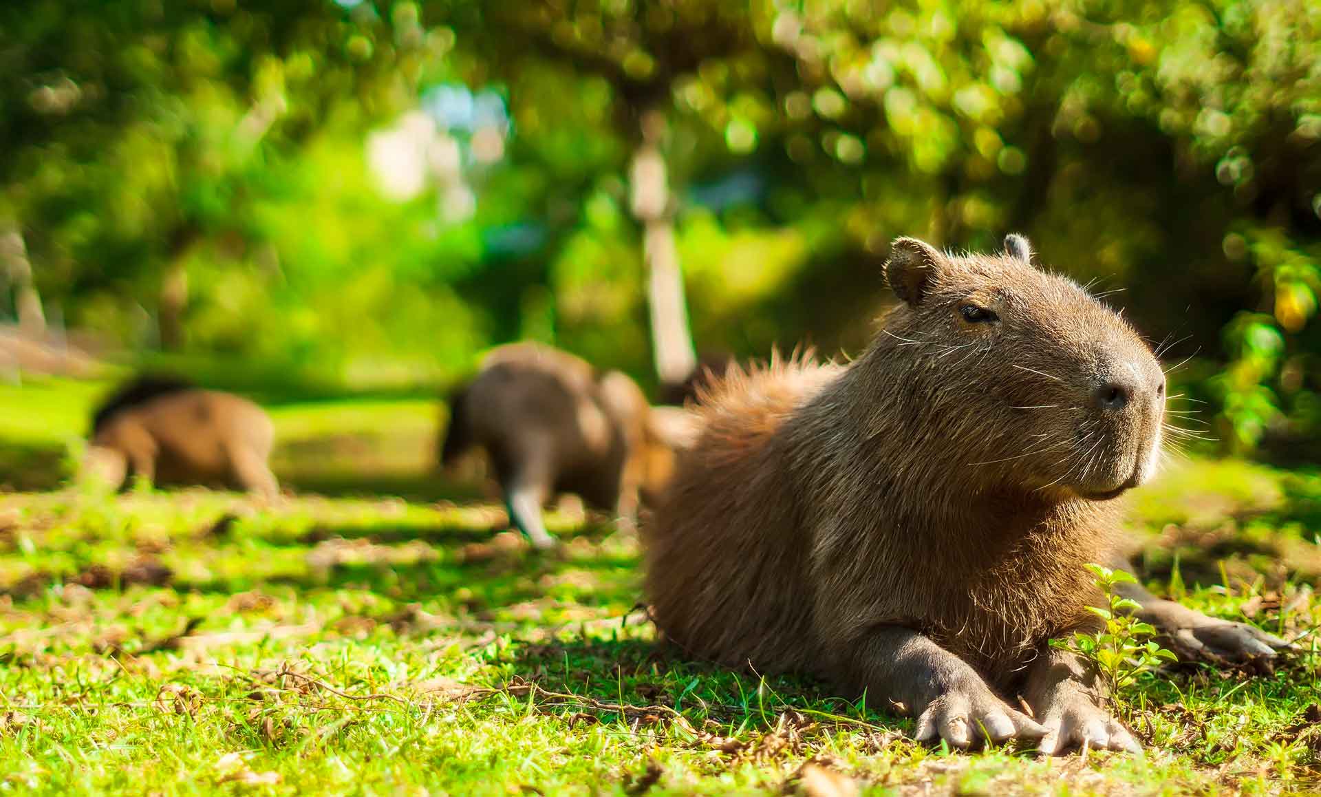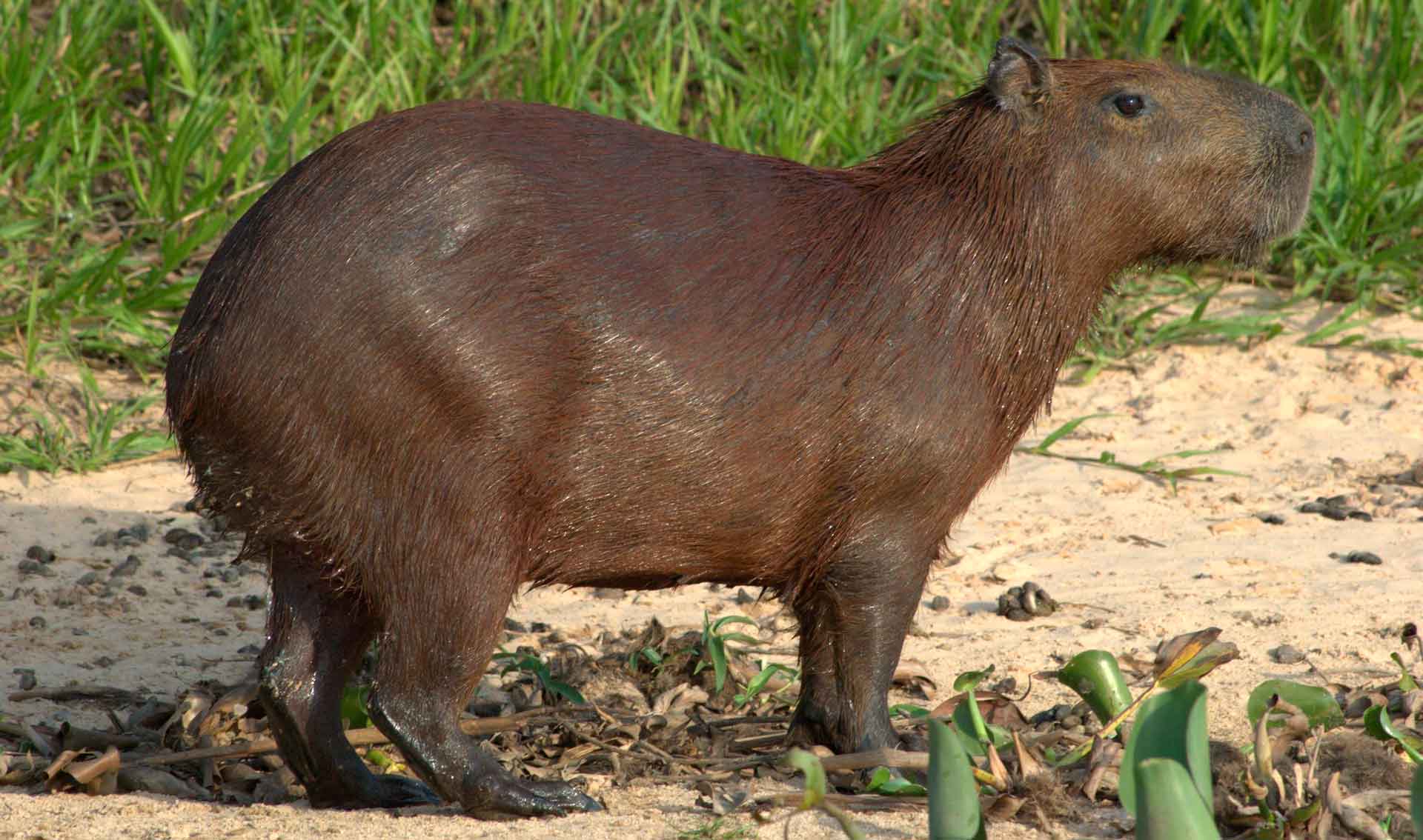 В сутки грызун капибара съедает до 3,5 килограммов травы. Такое количество необходимо для полного насыщения.