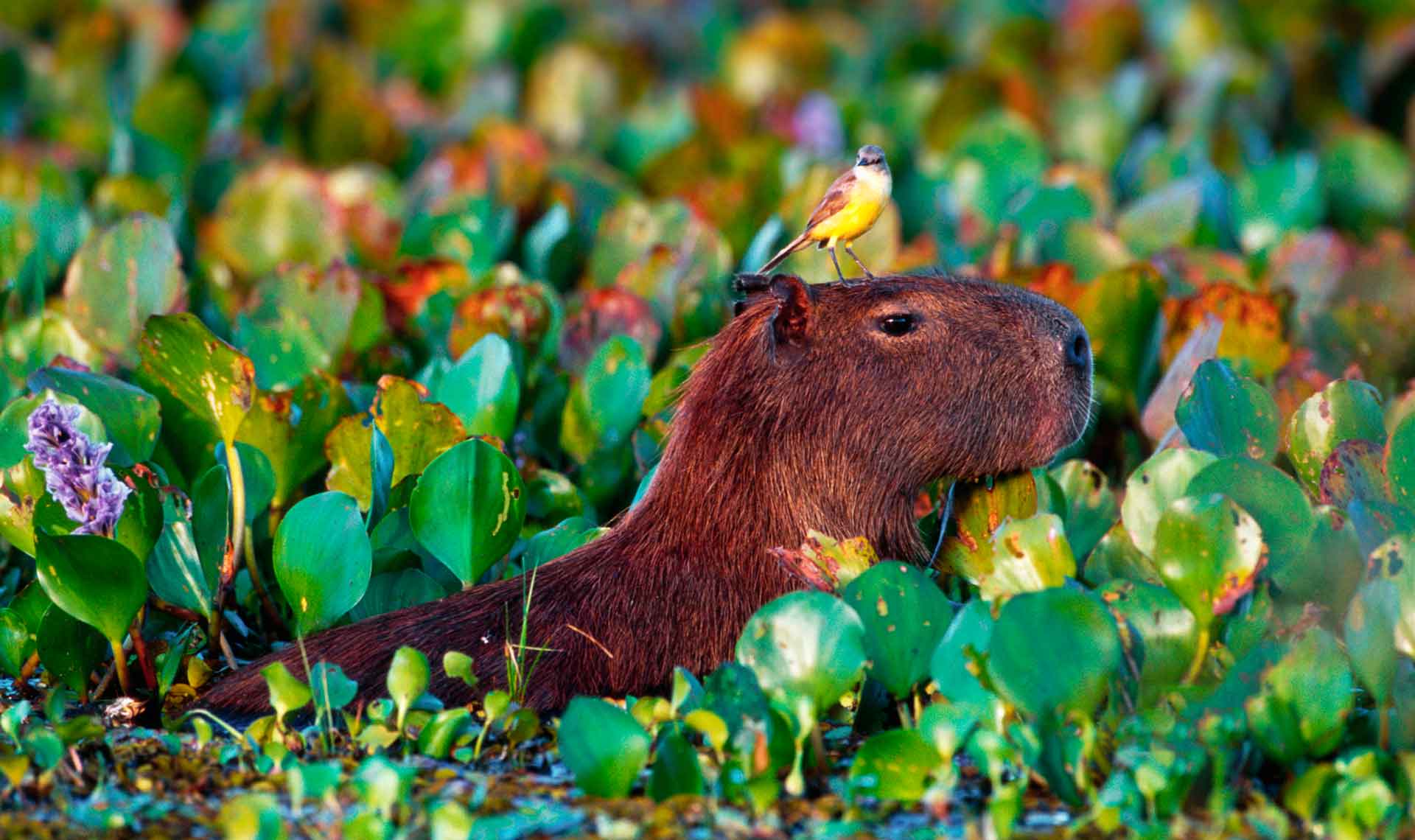 У капибар наблюдается симбиоз с птицами. Пернатые поедают насекомых из шерсти водосвинок и предупреждают об опасности.