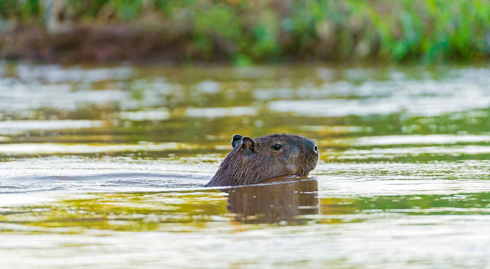 Вся жизнь капибары связана с колебаниями уровня воды. В сезоны дождей водосвинки разбредаются по территории, а в сухой сезон они собираются по берегам рек и водоемов. Животное капибара может преодолевать достаточно большие расстояния в поисках воды и еды. Грызун капибара отлично плавает и ныряет, при этом в воде чувствуя себя уверенней, чем на суше. Высоко расположенные глаза, уши и ноздри, позволяют водосвинке во время плавания держать их над водой.