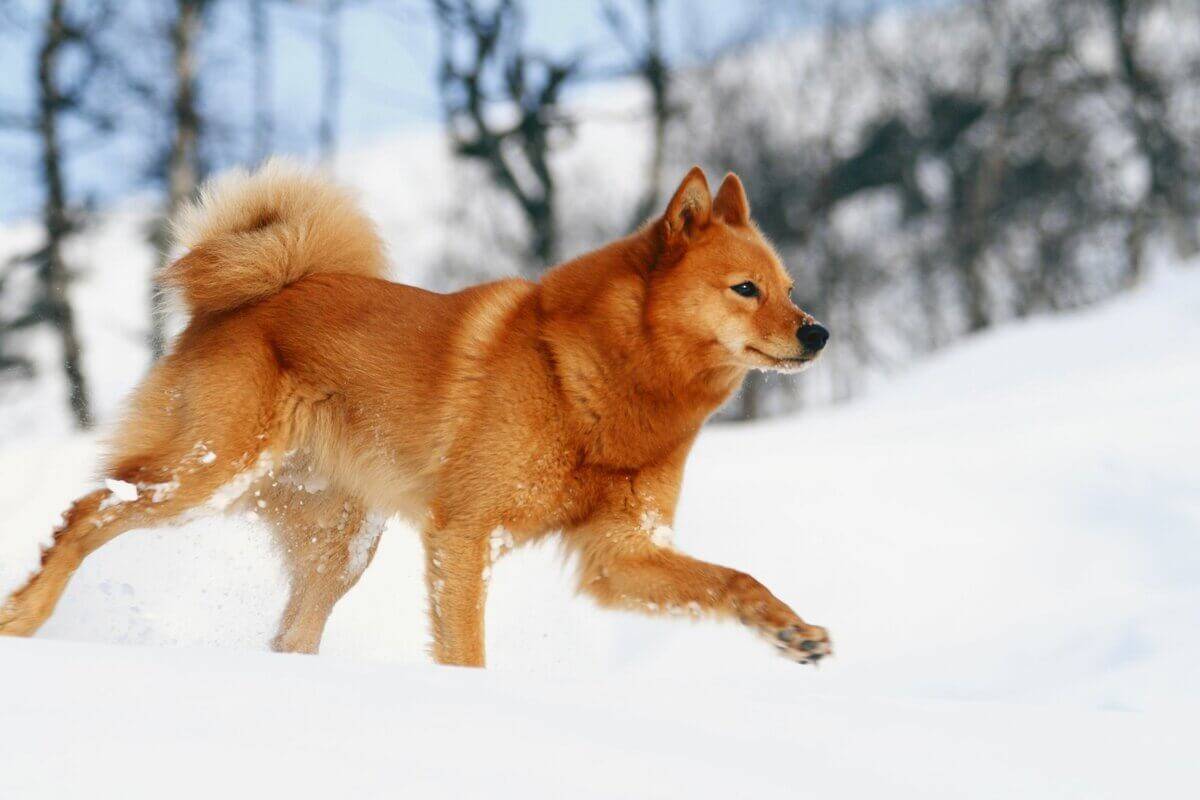 Финский шпиц собака среднего роста и сухого телосложения, крепкая и мускулистая. Длина корпуса по стандарту равняется высоте. Осанка горделивая, движения свободные – естественен переход с рыси на галоп и обратно. Собака способна резко менять темп движения, ускоряясь и замедляясь при необходимости.