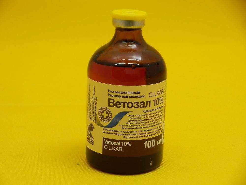| Ветозал | Бутафосфан, витамин В12 | Не указаны | Раствор для инъекций | Внутривенное, внутримышечное, подкожное введение | Индивидуальная непереносимость компонентов средства | Отсутствуют | 300 |