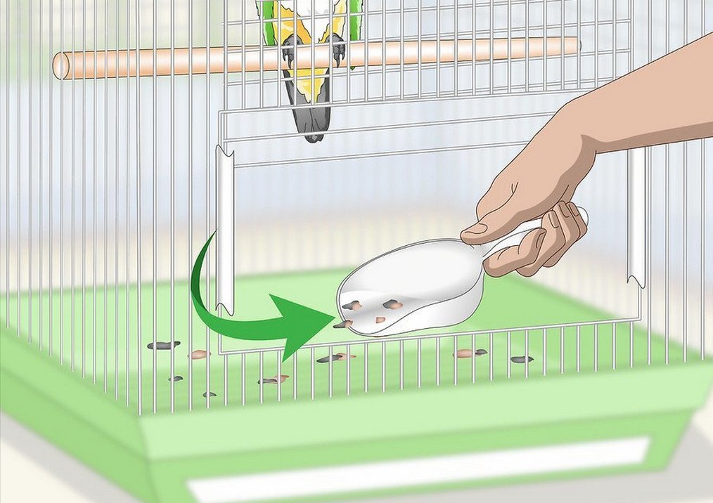 В регулярный уход за клеткой входят сухая чистка насестов, удаление содержимого поддона, мытье поилок и кормушек. В поддон кладут опилки, прессованный наполнитель или белые листы. Газеты и другая бумага с типографской краской не подходят – они содержат токсичные вещества.