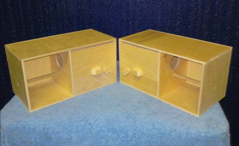 Комбинированный вид гнездового домика – оптимальный вариант. В нем также можно сдвинуть яйца вбок от случайных повреждений лапами самки. К тому же такой домик просторен, а также исключает случайный выпад неокрепших птенцов.