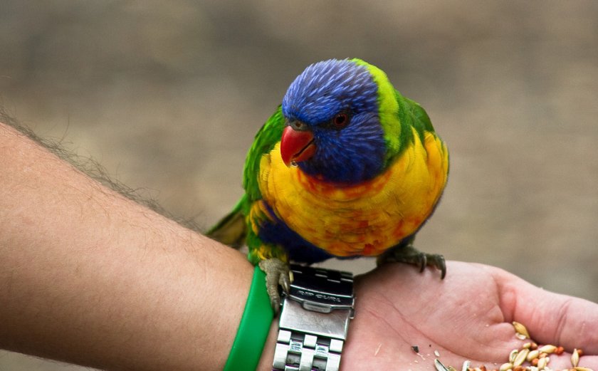 Владелец видит, что кормушка так и остается полной. Попугай совсем ничего не ест. Птица может не видеть кормушку, находясь в стрессовом состоянии. Насыпьте корм на дно клетки. Голод — не тетка, пернатый питомец сообразит, где находятся вожделенные зернышки, и примется с аппетитом уплетать их.